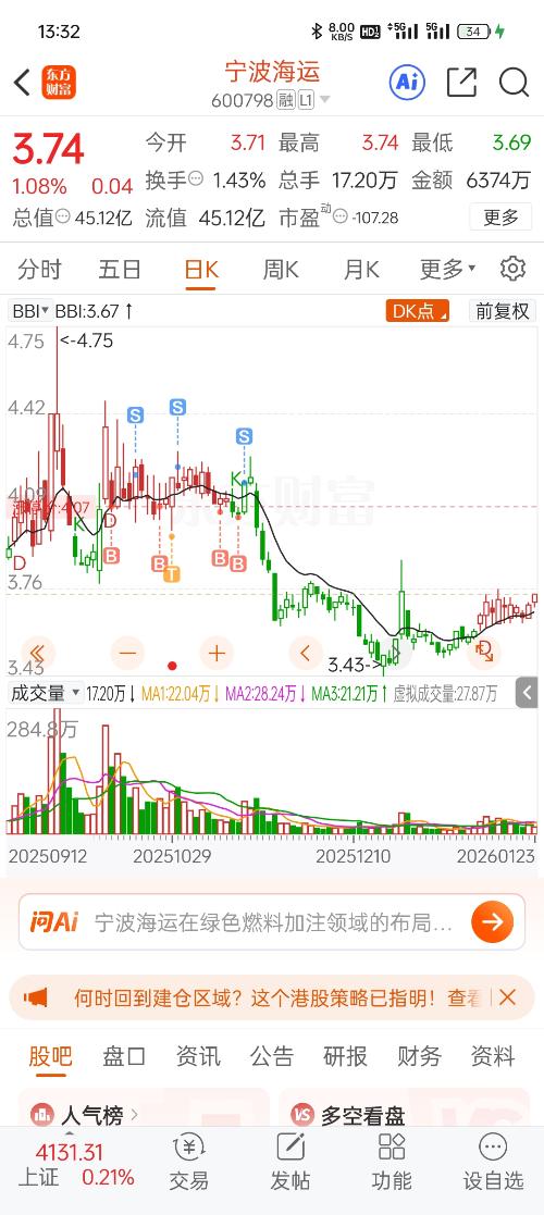 $宁波海运(SH600798)$ 都别T我来T加加加