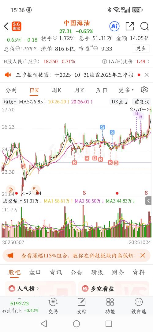 $中国海油(SH600938)$年底能到30元吗了?感觉站稳27元都难。还是等26元再加仓。