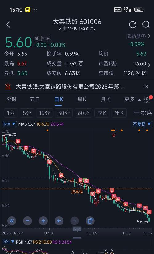$大秦铁路(SH601006)$5.52走了,不知道是对还是错?愿留下的友友发财!