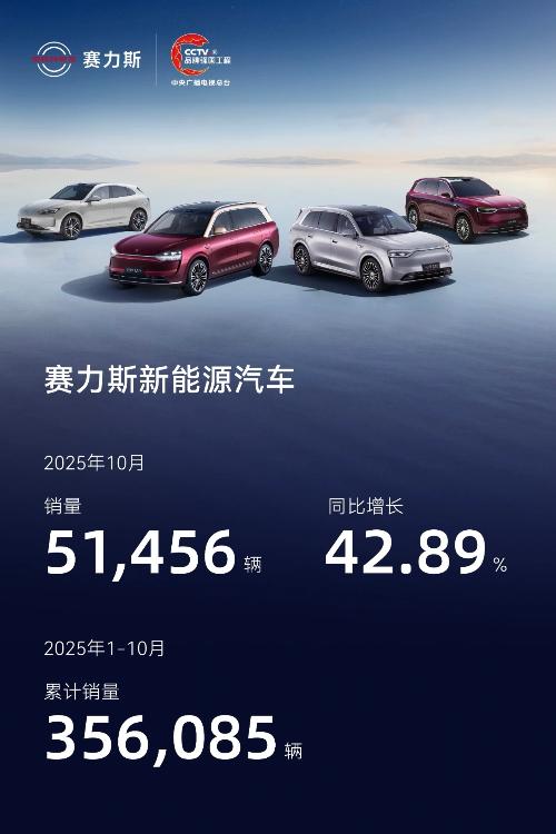 资讯 赛力斯:2025年10月新能源汽车销量51456辆 同比增长42.89%