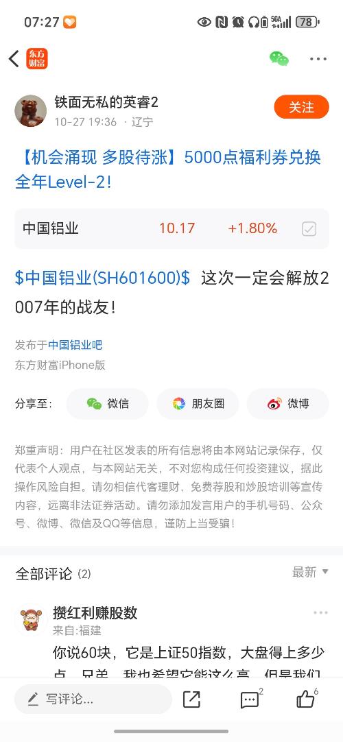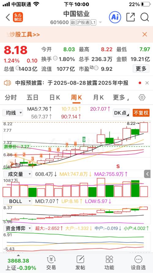 $中国铝业(SH601600)$你们多卖一点我低位再接一点!有色会一波长的持续行情!