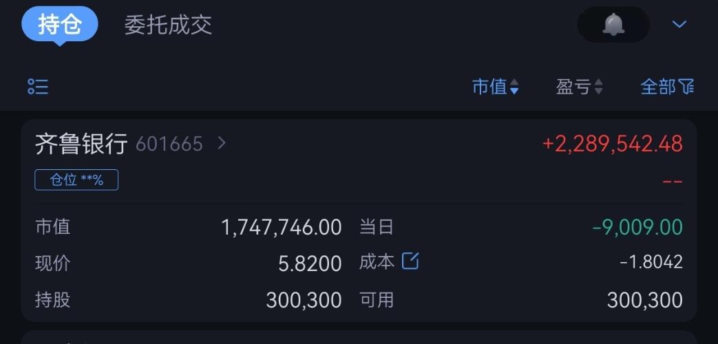 $齐鲁银行(SH601665)$今天看了眼持仓,发现齐鲁银行的持仓成本已经为负。因此有必要公告一下:本人持有齐鲁银行总股份的0.00488%,获利丰厚,随时可能在市场竞价交易时减持,请各位注意风险。