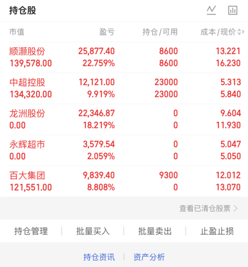 兄弟们晚上好!上周五好不容易修复的指数今天又冲高回落了,这么走下去明天感觉又是不大好了,目前市场是处于一个弱势抱团的现象,三大抱团对象分别是核电(强的直接一字,弱的调整,不给机会),商业航天(早上进的基本上能吃肉,性价比高),消费(今天如预期修复),明天还是看消费和商业航天,核电喜欢吃独食,一旦断板就是A杀,没在里面的兄弟就不要去接了。 持仓: $顺灏股份(SZ002565)$今天调整不打紧,明日...