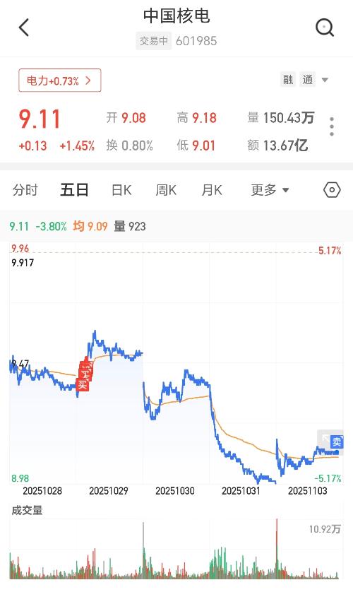 $中国核电(SH601985)$减仓完成,剩下的仓位锁死了,跌到9元下,再择机一点一点加!要是上涨!那就随你坐顺风车!又折回去联通接了点底仓!留足子弹,进退自如!