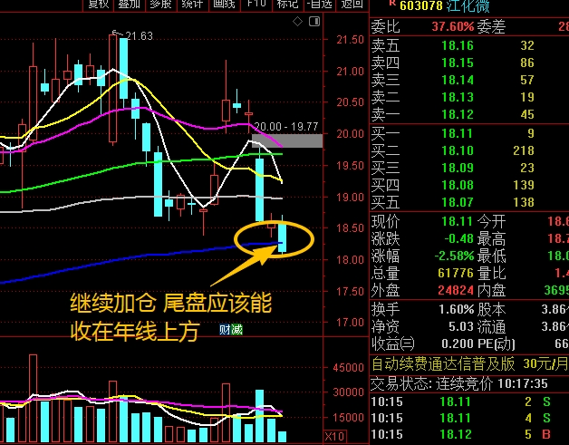 $江化微(SH603078)$上午提醒朋友年线下方加仓结果自己出去办事忘了给自己挂单下午回来发现自己没加上只能现价加了唉!聊天真误事多了2毛多成本就是几千元成本!!!