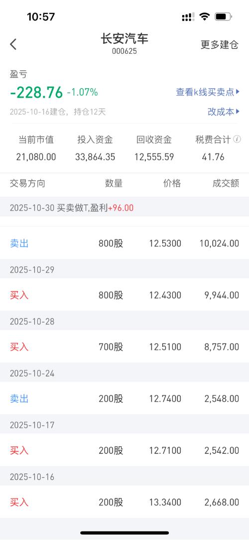 $长安汽车(SZ000625)$我容易我嘛从16开始13.34高站岗建仓2手这大半个月补仓做t现在持仓多了15手,成本做到才12.5346长安汽车,希望你给力点,我的耐心是有限的,