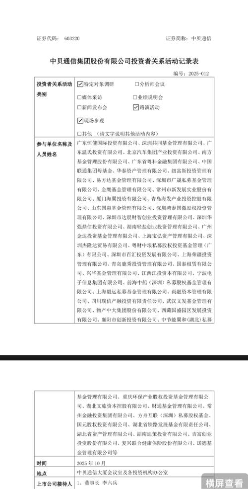 公告 中贝通信:2025年10月投资者关系活动记录表 更新于 10-31 20:35 147次浏览 72