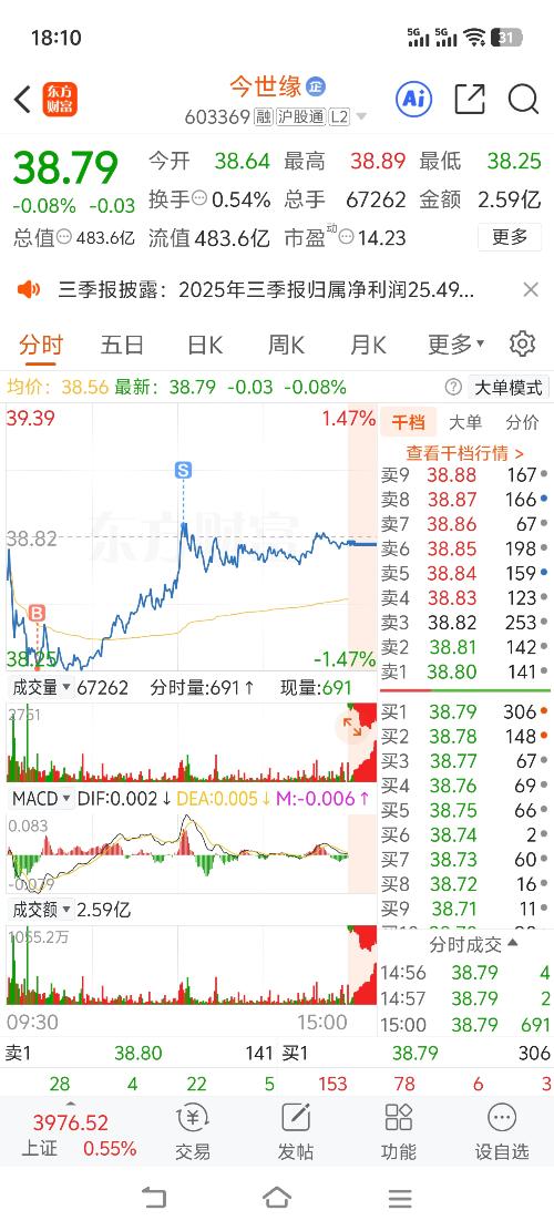 $今世缘(SH603369)$完美t,38.26入,38.88出。