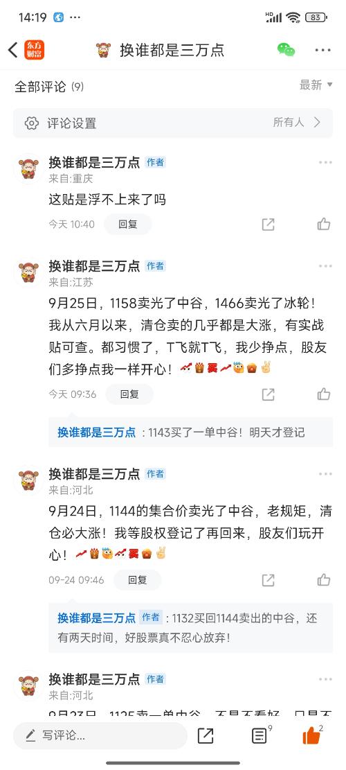 2025年9月25日,早上1158卖出的中谷,1143买了一半回来,明天分红登记!前个贴子浮不上来,不要了!