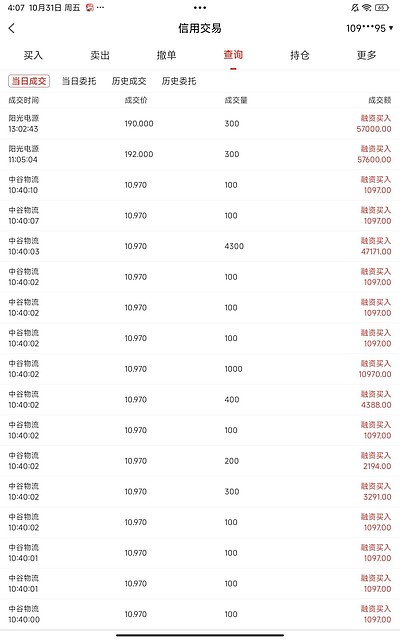 十月份运气不错 加仓买进中谷物流 阳光电源也许还要调整