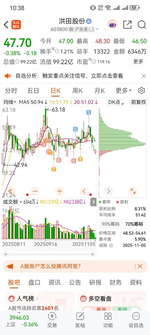 $洪田股份(SH603800)$今天不继续下跌了吗?明天继续震荡!!