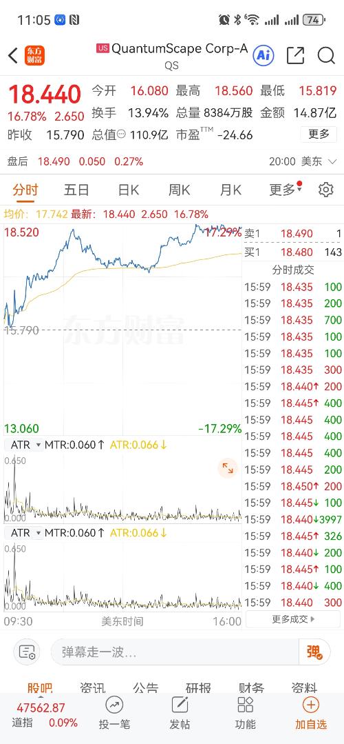 重大利好龙蟠科技!美股固态电池股QS周五晚暴涨16.78%