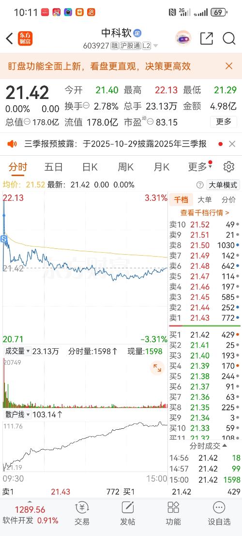 $中科软(SH603927)$不好意思兄弟们我先跑了