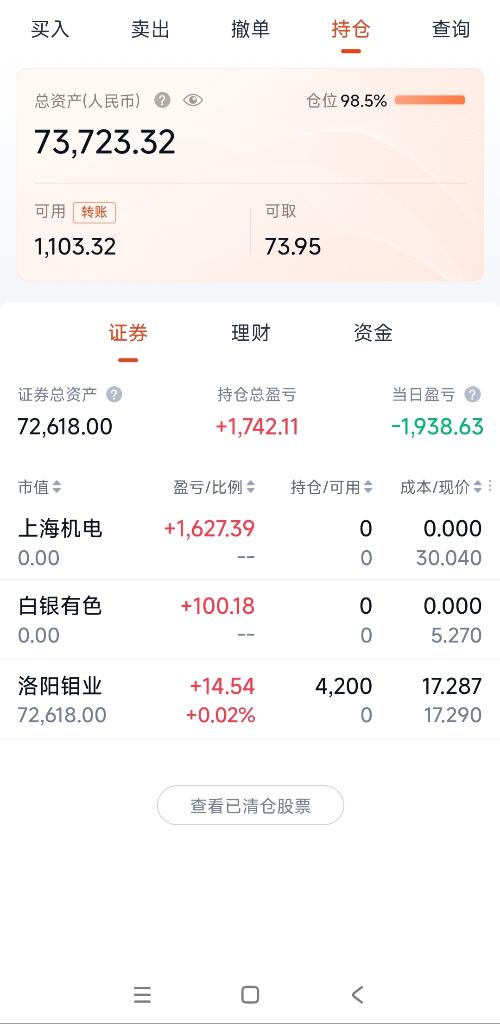 新手宝妈,挪子金库,9万入市,勇闯大A。实盘交易第94天,今日亏损1938元。今日持有洛阳钼业。 今日了结$上海机电(SH600835)$与$白银有色(SH601212)$持仓,转而布局$洛阳钼业(SH603993)$。早盘开盘不久,该股买盘汹涌,攻势凌厉,一度有冲击涨停之势,无奈后续动能不足,走势渐趋萎靡,收盘仅留下一根小上影线。整体来看,这波波动应属正常范畴,问题不大。 家人们,点赞点关注支持...