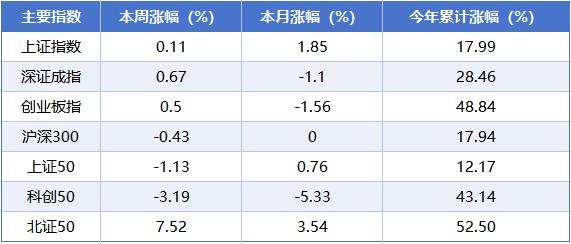 本周A股市场涨跌榜:三大指数冲高回落,CPO等科技板块回调