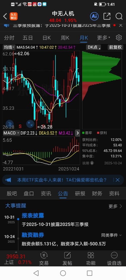 $中无人机(SH688297)$看月线筹码图,上面套牢盘太多了,压力山大!周五反抽下周一冲高诱多之后,还必须回调整理巩底。