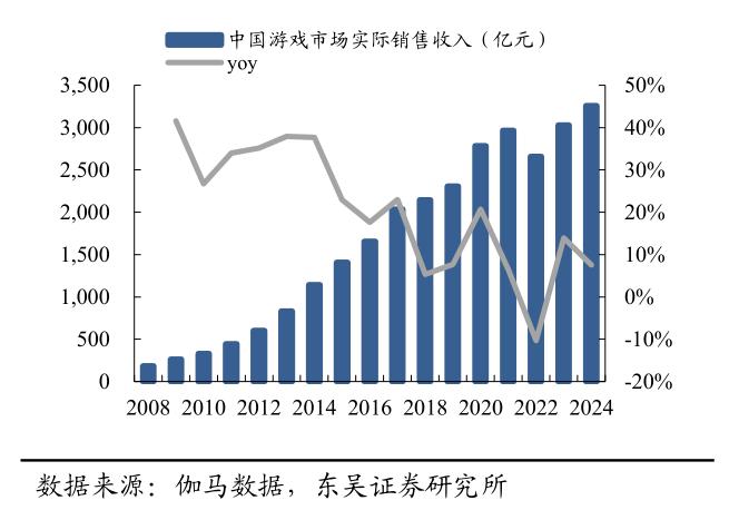 整体表现波澜不惊的传媒行业从来都不缺乏精彩的桥段,《哪吒之魔童闹海》票房的青云直上促成了光线传媒的暴涨,而泡泡玛特的十倍行情又引发了市场对IP的讨论。在传媒行业的子板块中,游戏行业是属于承载期望极高、但质疑也如影随形的板块。 图表1.年初以来传媒行业主要子行业行情 高收入增速、高毛利率的优质行业 游戏行业最近十余年的销售收入变化清楚的显示出其增速的潜力,即使疫情期间也影响不大,其中部分还是因为游戏...