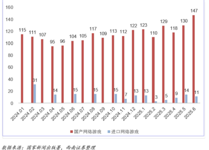 $网络游戏(BK0509)$18:06财联社9月24日电,国家新闻出版署公布的2025年9月游戏版号审批信息显示,145款国产网络游戏与11款进口网络游戏版号过审。