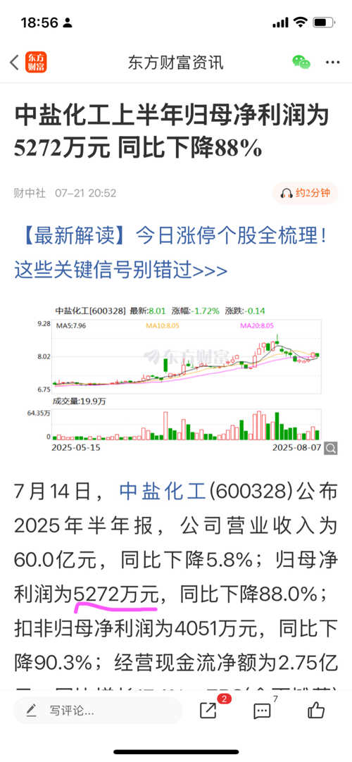 博源化工半年利润7亿元,三友0.7亿,中盐0.5亿元