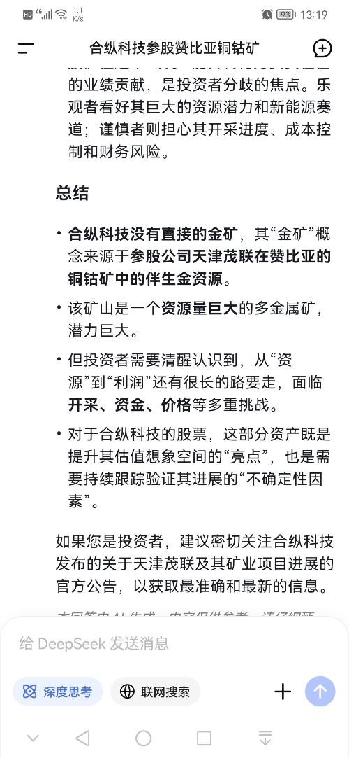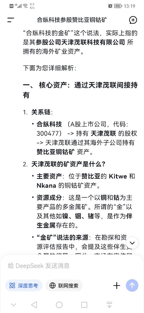 $ST合纵(SZ300477)$持有天津茂联股份旗下拥有赞比亚:铜矿数百万吨,金矿数十吨,钴矿等其他矿产资源。