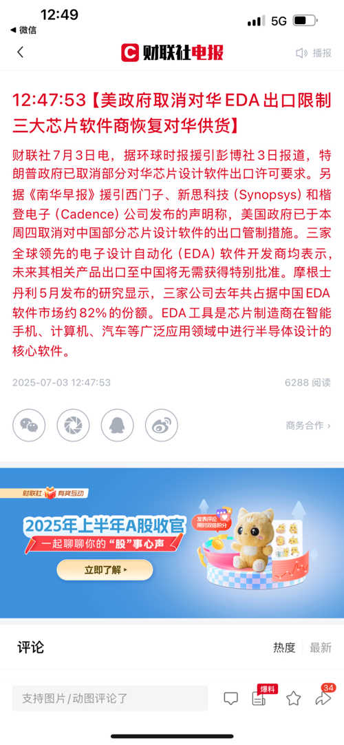#炒股日记##复盘记录##收盘点评##社区牛人计划##美解除对华EDA软件禁令!如何解读?# 今天有一件大事值得关注:美国解除了对华芯片设计软件的限制。目前美德EDA三大巨头,西门子...