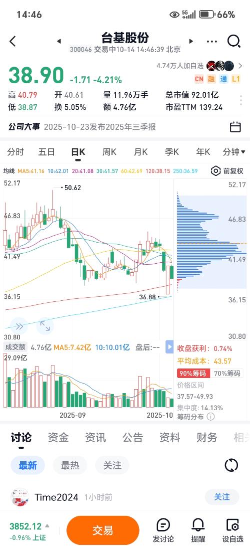 $台基股份(SZ300046)$盈利盘不足1%,下跌动能枯竭。接下来有公布湖北省国资委收购进展,以及3季度报。预测股价应该在这个月至少涨到43.57的平均成本之上。有待验证。$半导体(BK1036)$$EDA概念(BK0946)$