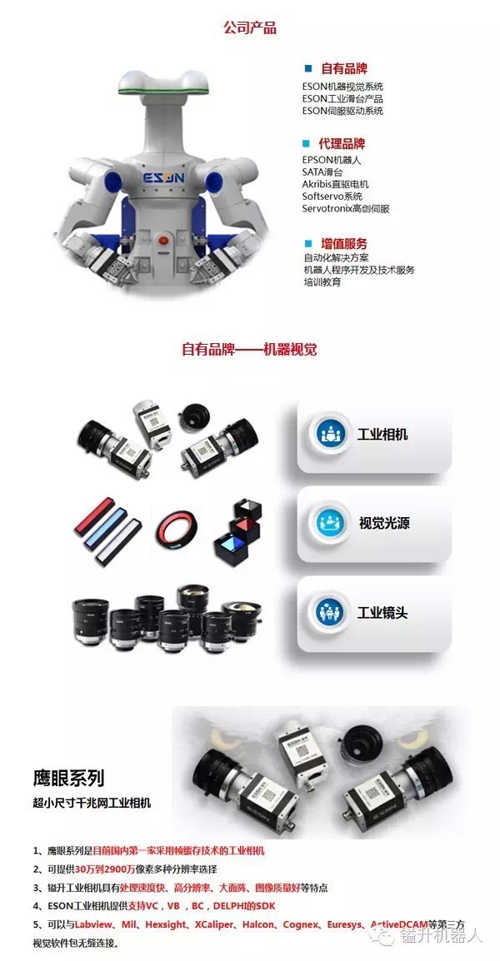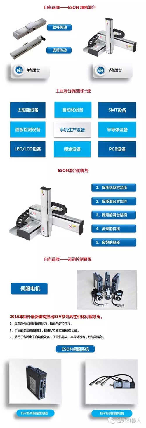 $海伦哲(SZ300201)$$人形机器人(BK1184)$$机器视觉(BK0998)$苏州镒升机器人科技有限公司成立于2002年,主要经营范围为工业机器人、工业相机、滑台和微米/纳米定位平台、直线电机、伺服运动产品以及自动化核心产品的研发、生产和销售,同时也是提供客户自动化整体解决方案的专业厂商。镒升经10多年的高速发展,在工业机器人、机器视觉应用领域方面累积了丰富的经验及雄...