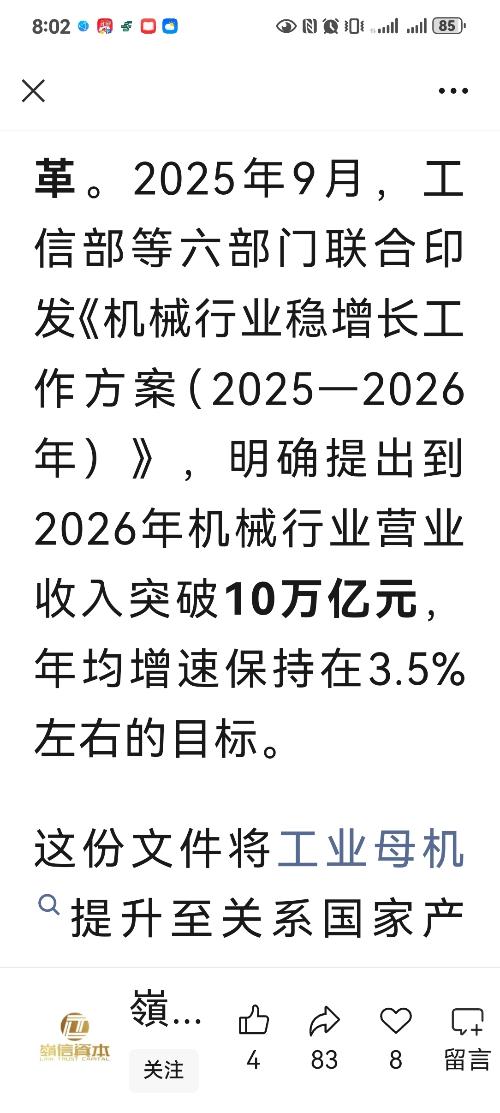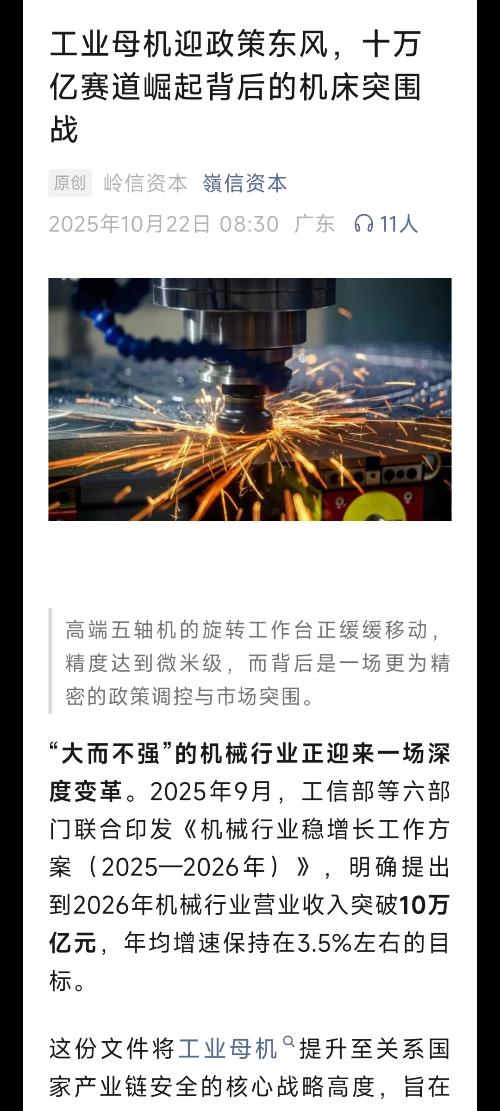 $并购重组概念(BK1181)$$闻泰科技(SH600745)$$工业母机(BK1004)$昆机5这家公司,最近这两年正在把命运的齿轮重新啮合到位。重整完成、股权结构稳定、杨林基地一期落地投产、二期全面推进、三期排期明确,营收与利润曲线从探底到抬升的变化已经体现在报表与产线节拍之中。把这条公司的微观曲线,放进“十五五”期间工业母机全面提速的宏观曲线里去看,你会发现两条线正在同频共振:一条是国家层面...