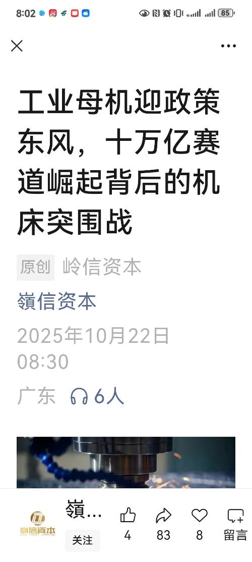 昆机5这家公司,现在的股价和市值如果放在整个工业母机行业来看,真的是被压得太低了。股价只有3.41元,总市值12亿元出头,营收却已经超过5亿元。而且这不是一家普通的小厂,这是有深厚历史积淀、央企控股、产能大幅提升的老牌机床企业。它背后的逻辑并不复杂,就是产业风口+产能释放+利润恢复+资本化预期,叠加重整后壳干净、控股结构稳定,一旦触发重估,股价和市值完全可能迎来成倍级别的上升。 --- ##一、行...