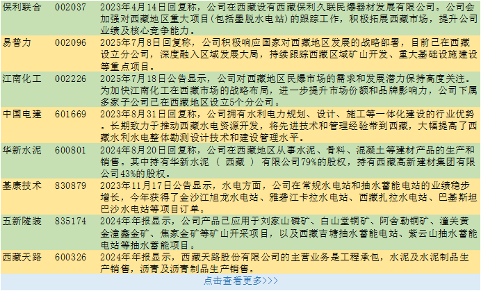 题材简介 7月19日,雅鲁藏布江下游水电工程开工仪式在西藏自治区林芝市举行。该工程位于西藏自治区林芝市,将建设5座梯级电站,总投资约1.2万亿元。雅鲁藏布江下游水电工程装机容量达7000万至8100万千瓦,相当于3座三峡、项目建设周期预计10年。雅鲁藏布江下游水电工程的装机量,将占到新中国成立以来已建水电装机总量的21.22%,超过五分之一。 东方财富证券研报特别指出,随着该项目的正式开工,民爆、...