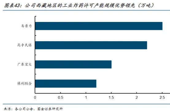 - 广东宏大:在西藏地区拥有民爆炸药产能共1.5万吨,公司将做好充分准备,包括但不限于民爆产能、技术人才、智能化设备等资源向该项目倾斜,积极参与雅鲁藏布江雅下游水电项目基础设施建设.2025年1月27日以22.06亿元成功收购新疆雪峰科技21%的股份。雪峰科技正式成为广东宏大的控股子公司,雪峰科技作为新疆本土的爆破服务和民爆企业,在新疆市场深耕多年,形成了硝酸铵、民爆产品生产及销售,以及下游爆破工程服务的完整产业链体系,拥有民爆产能11.75万吨,是新疆唯一的硝酸铵生产企业。标志着广东宏大在民爆产业整合升级迈出了坚实的一步。《“十四五”民用爆炸物品行业安全发展规划》明确提出,要按照“政府引导、企业自愿、市场化运作”的原则,推动企业重组整合,支持行业龙头骨干企业开展跨地区、跨所有制的重组整合,鼓励企业间联优并强,提升产业集中度,打造3-5家具有较强行业带动力和国际竞争力的大型民爆一体化企业。广东宏大和雪峰科技均为民爆行业的龙头骨干企业,深耕行业多年。此次广东宏大控股雪峰科技,是双方顺应民爆行业整合政策导向的积极行动,将实现跨区域整合,联优并强,有力推动民爆行业整体发展。广东宏大战略目标明确,坚定向军工转型、向国际化进军,全力推动优势产业的外延式扩张和三大板块的内生增长。在矿服和民爆板块,广东宏大作为国内领先的矿山工程服务和民用爆破器材生产企业,一直致力于通过产业链整合提升核心竞争力。此次收购完成后,广东宏大的民爆产能将从58万吨提升至69.75万吨,位居全国前列。同时,广东宏大并购雪峰科技后,将成为新疆地区爆破服务规模和产能规模最大的主体,在市场竞争中具备极大的规模优势,有利于促进双方产业协同,进一步发挥规模效益,
