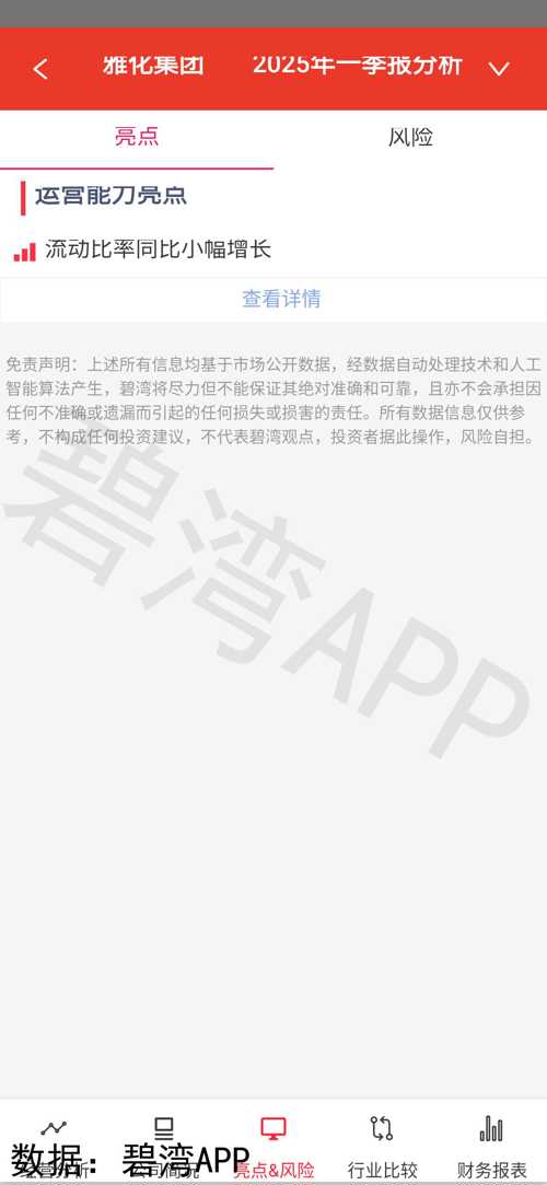 雅化集团一季度净利润虽同比大增7.41倍,但经营活动现金流净额由6.74亿元转为-5.43亿元,反映盈利质量承压。主要因采购支付现金增加及应收账款减少,导致经营性现金流出扩大。尽管投资活动现金流改善,但净现金流仍转为-1.47亿元,凸显资金链压力。需警惕收入下滑17.03%背景下,现金流与利润背离可能引发的营运风险,后续需关注回款效率及资本开支管控。