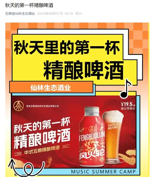 近日,宜宾五粮液仙林生态酒业有限公司发布消息,称将于8月15日正式上市一款中式五粮精酿啤酒,命名“风火轮”,单罐净含量390ml,建议零售价19.5元/罐。 “‘风火轮中式五粮精酿啤酒’的推出,是五粮液品牌战略的一次重要进化。”仙林生态酒业介绍,“它不仅是产品线的丰富,更是品牌年轻化、国际化的有益探索。通过精酿啤酒这一国际化的品类载体,融入独特的‘中式’五粮精酿元素,其扎实的市场调研、清晰的产品矩...