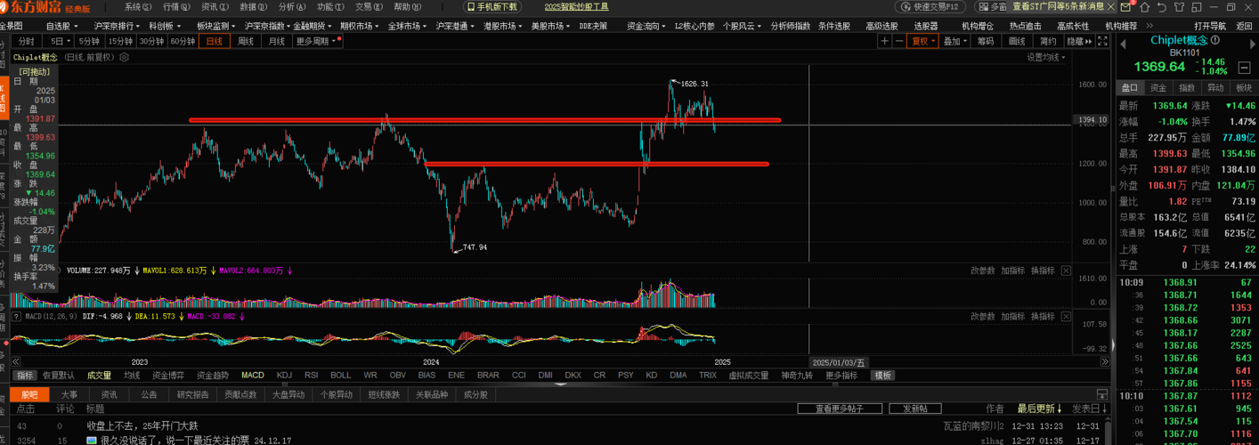 $Chiplet概念(BK1101)$收盘上不去,25年开门大跌