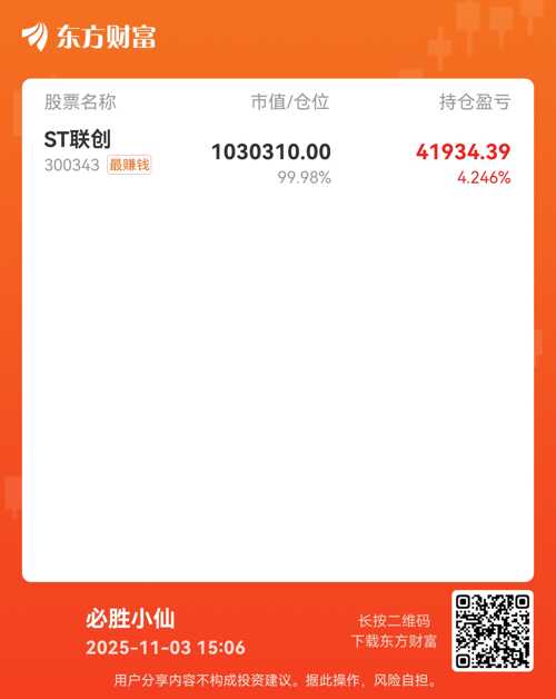 $上证指数(SH000001)$$ST股(BK0511)$ 板块再次迎来盛世,看到某球的百花争艳,再看到东方的人才凋零,忽然有点怀念东方N年前的盛况, 这里N年前就诞生出了最强短线打板客,最强逻辑客,还有最强中线基本面客,最强龙头趋势客,百家争鸣, 条条大道通罗马,而这些各个赛道中的佼佼者们,经过N年沉淀到了今天实盘也早已进千, 所以昨天晚上就想起了完美世界中的一句话, 重瞳本是无敌路,何需再借他...