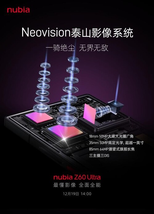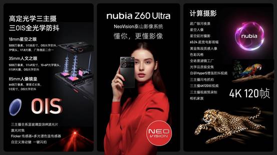 今天,努比亚Z60Ultra正式发布。搭载NeoVision泰山影像系统——高定光学三主摄,全新UDC柔性全面屏,支持第五代屏下摄像技术。对此,努比亚技术有限公司董事长倪飞表示:“手机创新能带来变革性体验提升的,一个是屏幕,一个是影像。我们已经连续投入5代做屏下,只为带来最纯粹、极致的全面屏。NeoVision泰山移动影像系统,史上最强三主摄全定制、三OIS全防抖,每颗摄像头都是单兵之王...