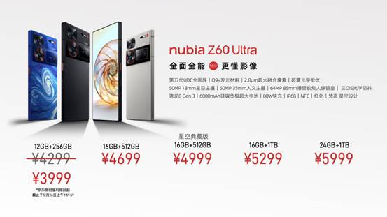 努比亚Z60 Ultra 发布 高定光学三主摄+第五代屏下摄像技术