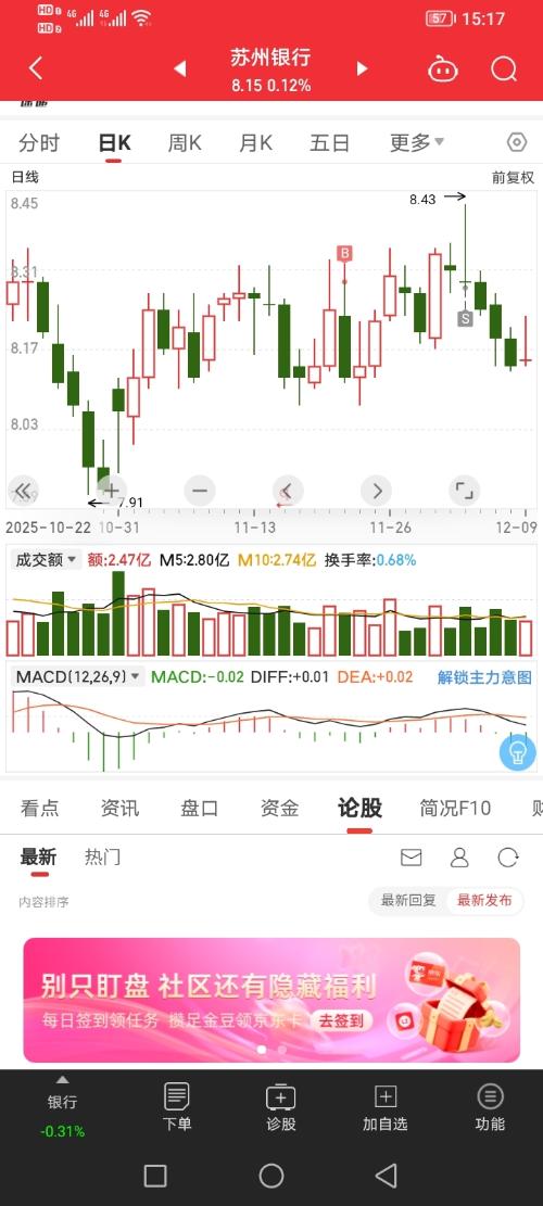 $苏州银行(SZ002966)$今天应该收盘8.3以上吧?
