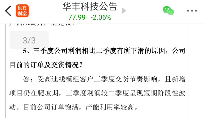 $华丰科技(SH688629)$ 说一下业绩说明会: 一、产能三季度比二季度有所提升 所以利润下降不是生产能力和订单问题。 二、为什么三季度环比利润下降呢? 交货节奏,其实就是推延营业额确认,目的也很明显,三个月定增差不多就完成了,然后年报高增,这都是通用套路。 小结:公司从订单,价格,生产能力各方面都没问题,只是想低价定增。不想在这浪费时间的资金看明白走了,剩下一帮小散在这抱怨,没必要。满仓的有...