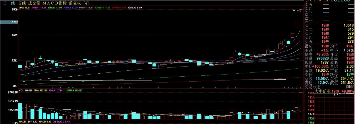 $大中矿业(SZ001203)$4至5年回本的矿,160亿的投入,上市公司少有,内蒙创造一个千亿市值公司,长线耐心投资,与公司共成长的股,公司的成长,股价自然去涨到价值,参考胜宏科技,长域不是一天修的,一锹挖不了一囗井,