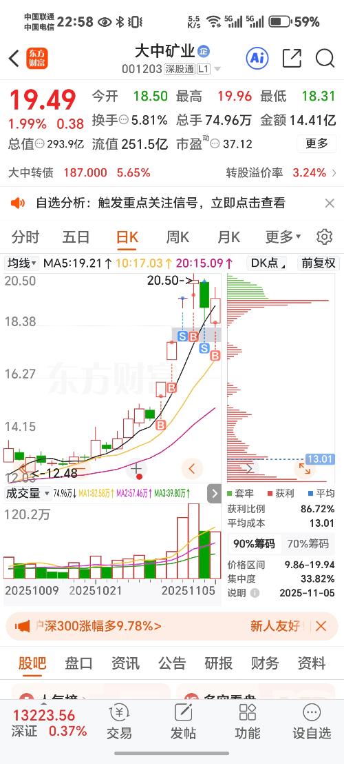 $大中矿业(SZ001203)$打算长期持有做T了,做这只票不能心急