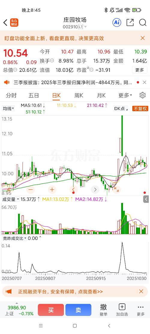 $庄园牧场(SZ002910)$这玩意业绩这么差,天天涨