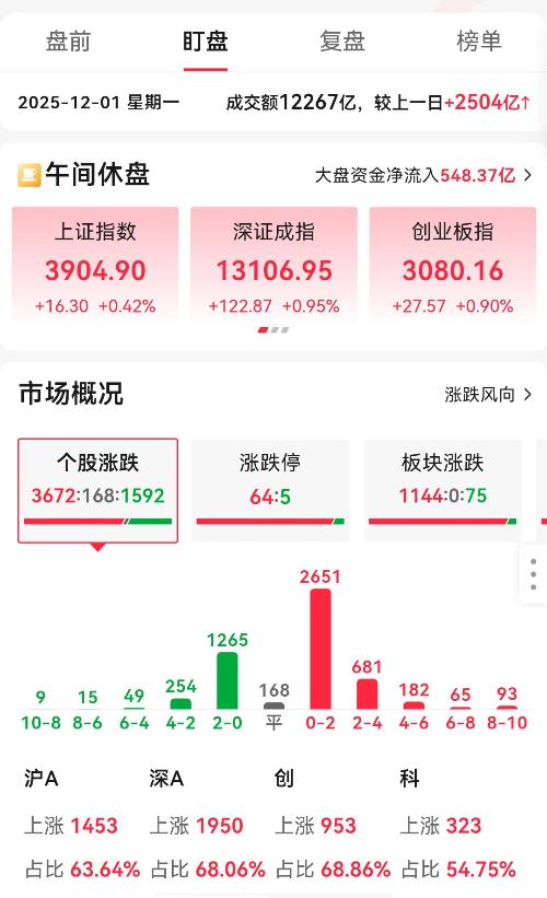各位兄弟姐妹们,中午好!我是麦爸! 今儿个市场可算是给咱们送“量”来了,半日成交直接干到1.23万亿,比上个交易日放量超过2500亿,这口气喘得够粗壮! 三大指数齐刷刷上涨,沪指重回3900点,深成指和创业板指也涨近1%,全市场超3600只个股飘红,涨停股多达64只! 盘面热点那叫一个热闹,卫星互联网、消费电子直接领涨,屏下摄像、AI手机、6G概念这些科技板块集体爆发,连影视传媒都跟着沾光,《疯狂...