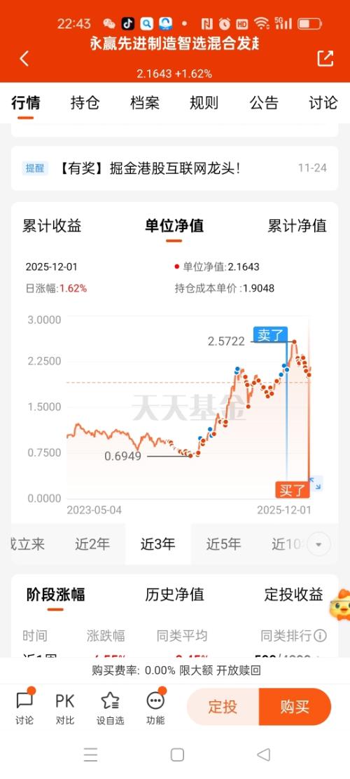 随着美联储降息预期的推进,AI需求进一步加大,有色板块盘中顺势走高,其中申万菱信行业轮动C今晚大涨1758%,涨幅比较靠前,夏普比率优且回撤低,近一年涨幅52.36%,在当前的震荡行情里展现出较强的韧性,后市值得期待啦!$华宝中证稀有金属指数增强发起A(OTCFUND|013942)$$嘉实中证稀有金属主题ETF发起联接C(OTCFUND|014111)$#12月基金投资策略#