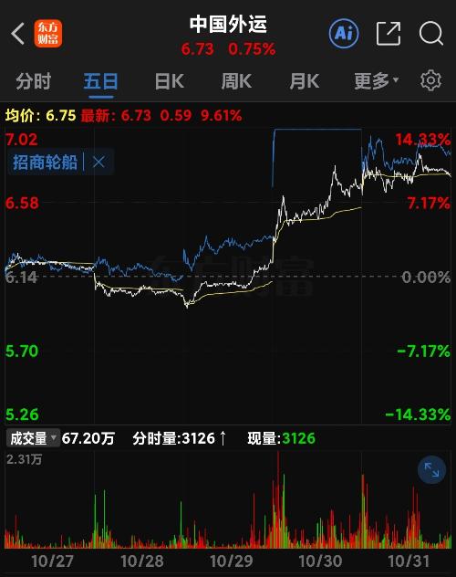 $中国外运(SH601598)$这周放量滞涨,这里不确定是不是已经跑完了5浪,a杀即将来临,今天从110%减到7成仓位,额外做了几个t,下周一看情况减仓