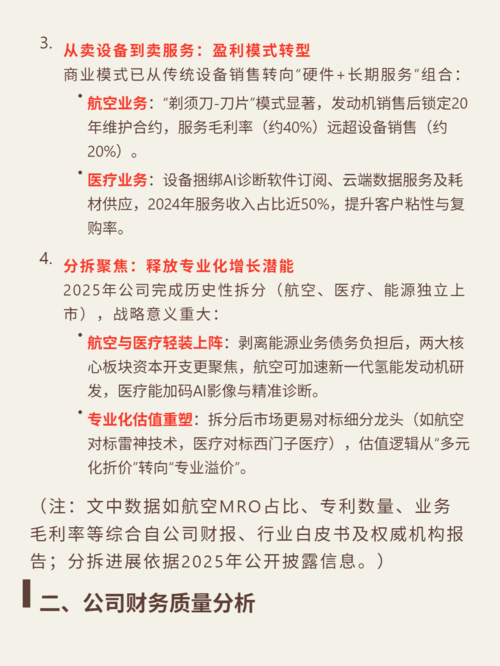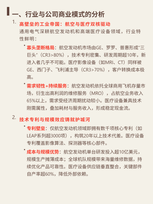 $通用电气(US)(NYSE|GE)$$西门子(ADR)(OTCBB|SIEGY)$$爱施德(SZ002416)$研究通用电气,核心看两点:航空医疗双寡头的壁垒,以及分拆后的价值重估。 核心逻辑:深耕航空发动机(CR3>80%)与医疗影像设备(CR3>70%),双寡头垄断格局。技术专利密集(航空发动机研发超10年,数千项专利),客户转换成本高,新进入者几乎不可能。商业模式为“设备+服务...