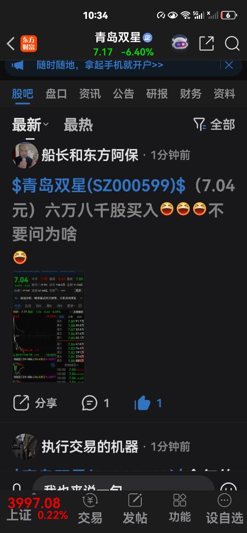 $运鸿绿色CTI(NASDAQ|YHGJ)$ $青岛双星(SZ000599)$【换股】全仓买入青岛双星!!!和标准股份是一个主力,大家积极抄底青岛双星,买掉的别后悔青岛双星