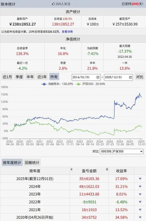云飞量化百万实盘公开操作第2045天,今天盈利3000多元,盈利比例0.14%,今年累计收益17.69%。 自2020年4月27日公开操作以来总收益138.28%,同期沪深300上涨20.54%,中证500上涨34.67%,创业板上涨54.34%,科创50上涨16.83%。 现在全市场一共有2.3万多只基金,与之相比,百万实盘同期收益目前排名为第240名。 投资与生活 每日提醒:量化是工具,认知是...