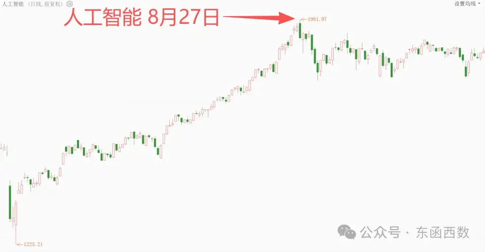 一、上证指数在8月25日收了一根放量的中阳线,这种态势,最容易鼓舞大家冲进来,历来主板表现强劲时,市场喜欢炒作券商,于是8月25日那天,证券也见了高点了,一直回调到现在。 投机资金冲进券商板块后,在回调初期,多数人应该是感受不到证券要回调挺长一段时间了,乘着这个时间,主力把热点转向小票为代表的科技股。 二、前面说了,看到证券回调时了,有些反应快的活跃资金,就转去玩AI,于是中证2000在8月27日...