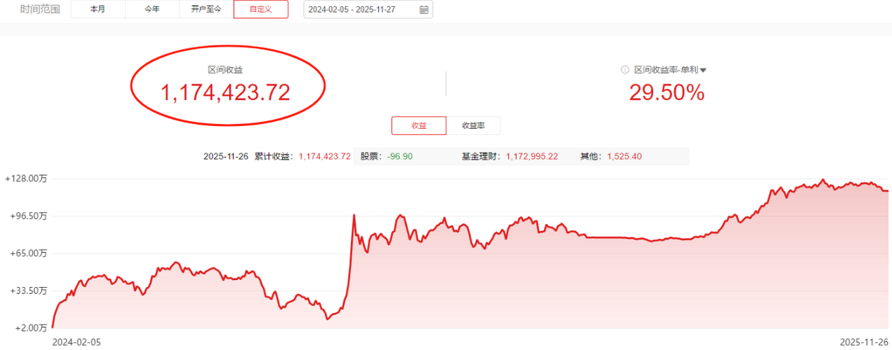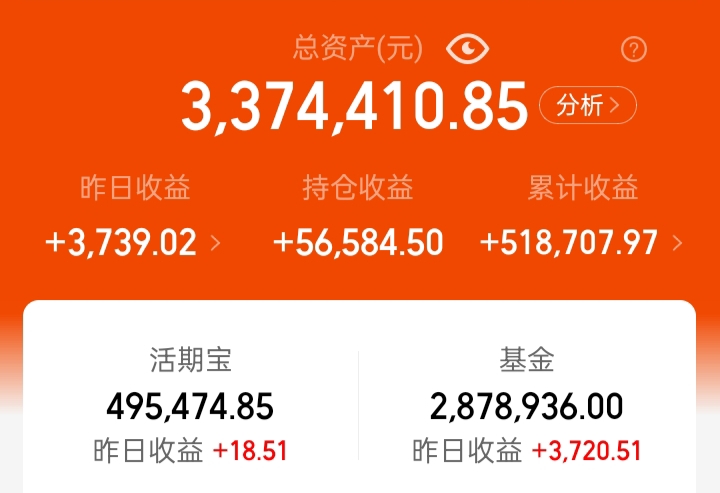 11月29【投资收益及部分持仓明细】累计收益超51.8万。昨日收益3739元。